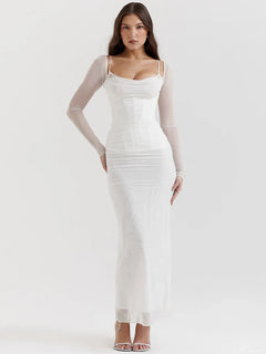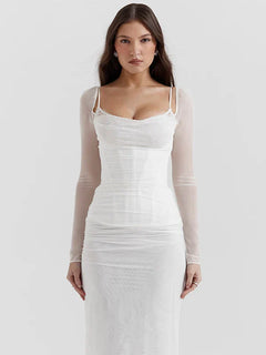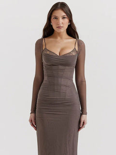 Women's Long Sleeve Mesh Dress Double Layer Patchwork  Lace