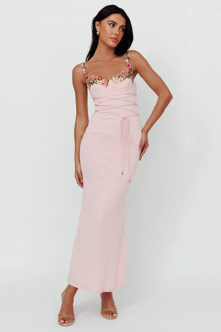 Women's Elegant Long Dresses European and American Style Applique Dresses 2024 New Waist Tie Spice Girls Hip Long Dresses