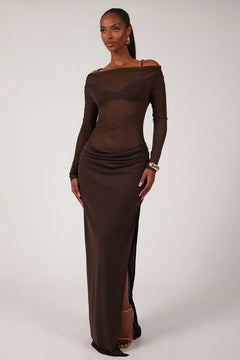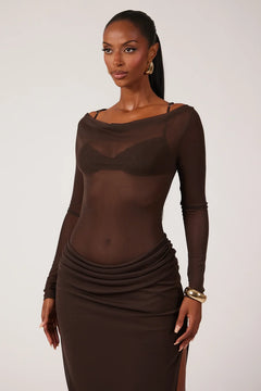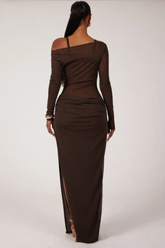 Women's Shiny Pleated Bodycon Long Dress High Slit Long Sleeve Patchwork Hollow Out Solid Color Sexy Fashion