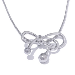 This JORIEL necklace features a charming bow-knot pendant in gold color, made from durable stainless steel. The short chain design is perfect for daily wear, while the waterproof feature ensures long-lasting shine. Upgrade your jewelry collection with this elegant and versatile piece.