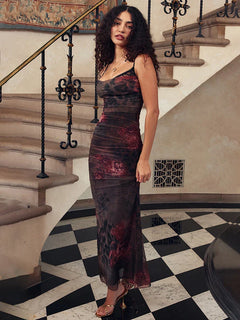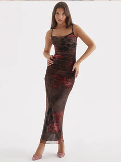 Elegant Spaghetti Strap Print Women Maxi Dress